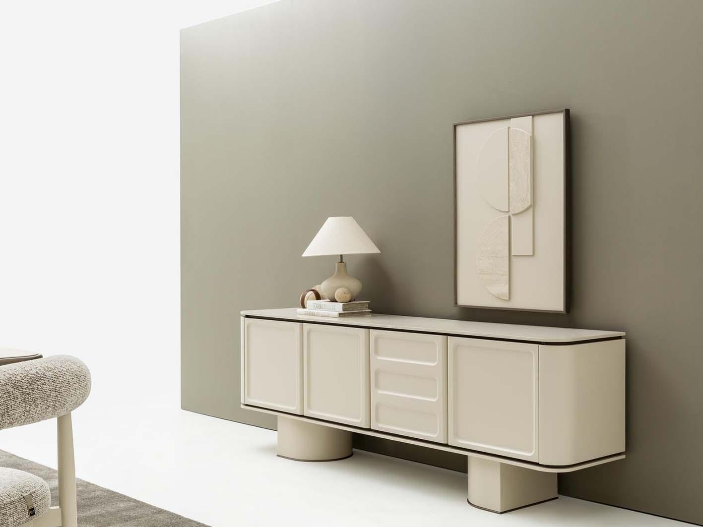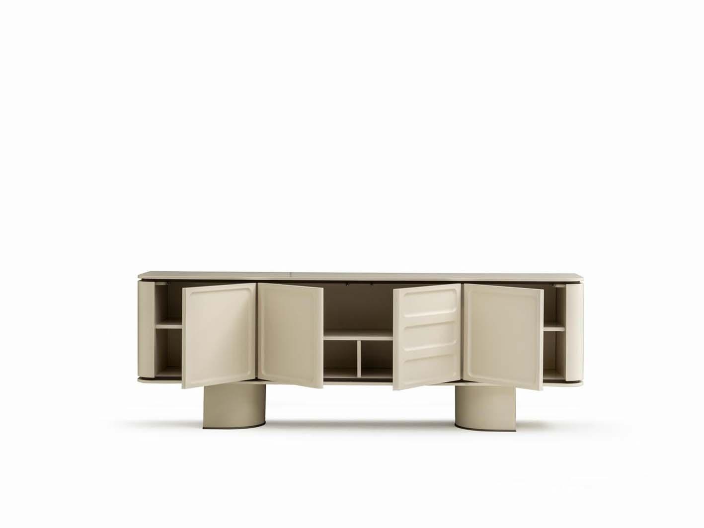 تفاصيل معمارية فريدة: القواعد الأسطوانية تضفي لمسة جمالية مميزة، مما يعزز جاذبية الكونسول ويضيف لمسة فنية للغرفة.