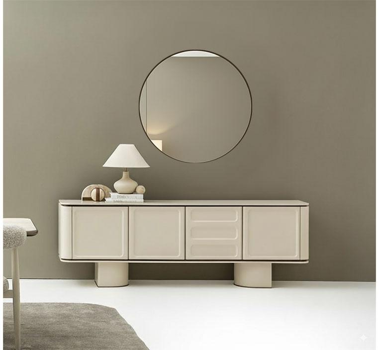 متناسقة مع الكونسول: تصميم المرآة المتناغم مع الكونسول يخلق توازنًا بصريًا مثاليًا ويعزز جمالية الغرفة.