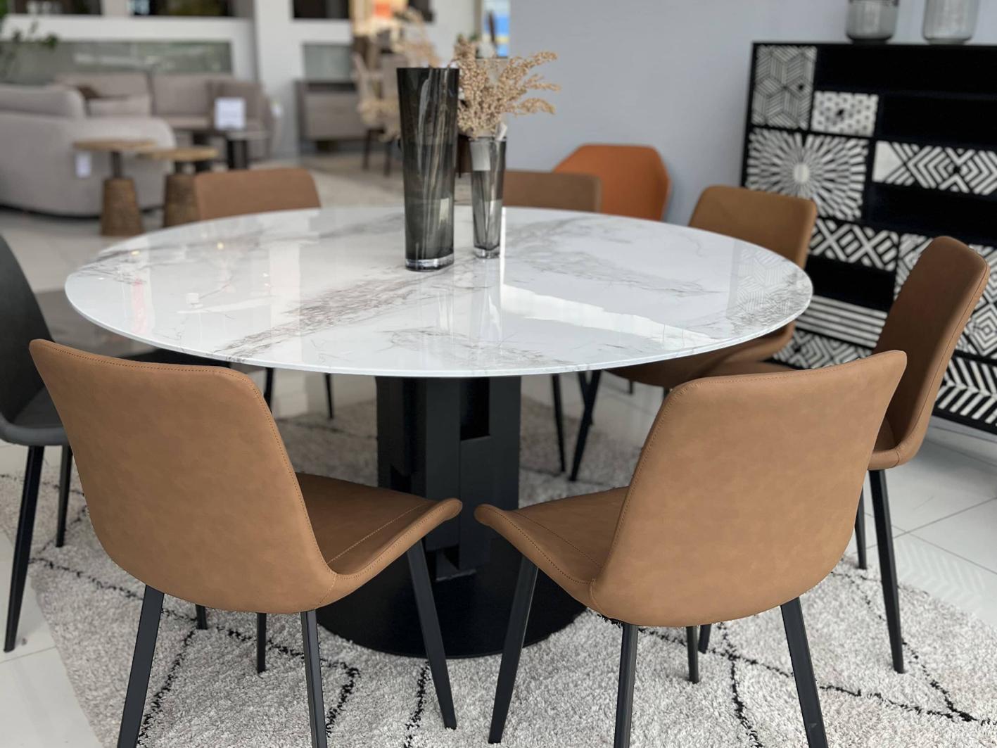 أضف أسلوبًا خالدًا إلى مساحة تناول الطعام الخاصة بك مع كرسي الطعام ريسيب. تم تنجيد ريسيب بجلد باللون بني، ويتميز بمقعد واسع منحني لتوفير أقصى درجات الراحة. خياطة متباينة وخياطة سوطية تتزين بالجلد الصناعي المتين. توفر الأرجل الصلبة دعمًا قويًا وتمنحه مظهرًا رائعًا.