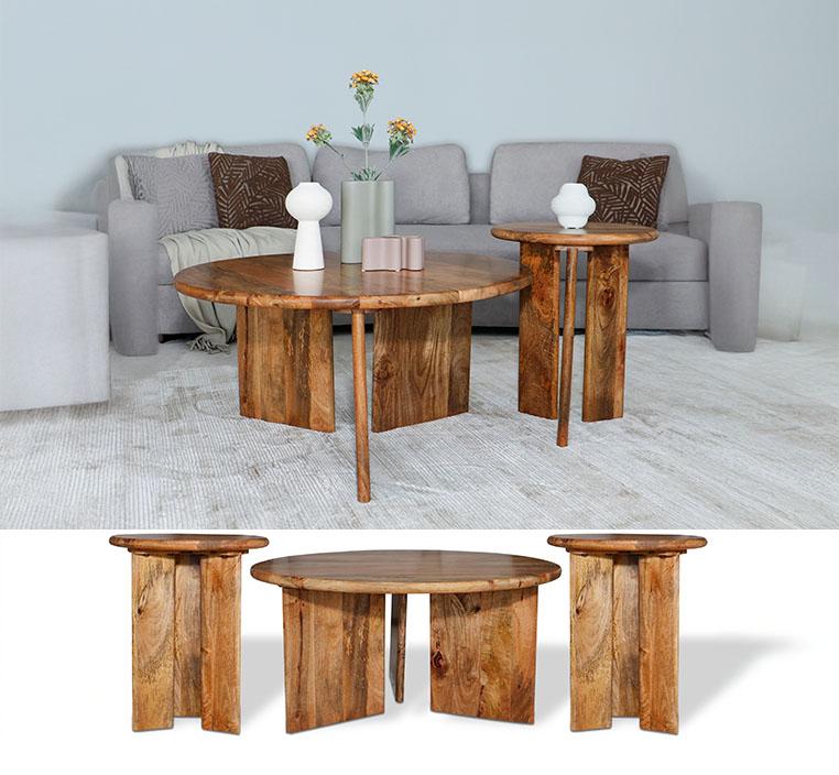 الطاولة الرئيسية مثالية كطاولة قهوة، بينما يمكن استخدام الطاولتين الجانبيتين كمساند إضافية لوضع الكتب، المشروبات، أو الديكورات الصغيرة.