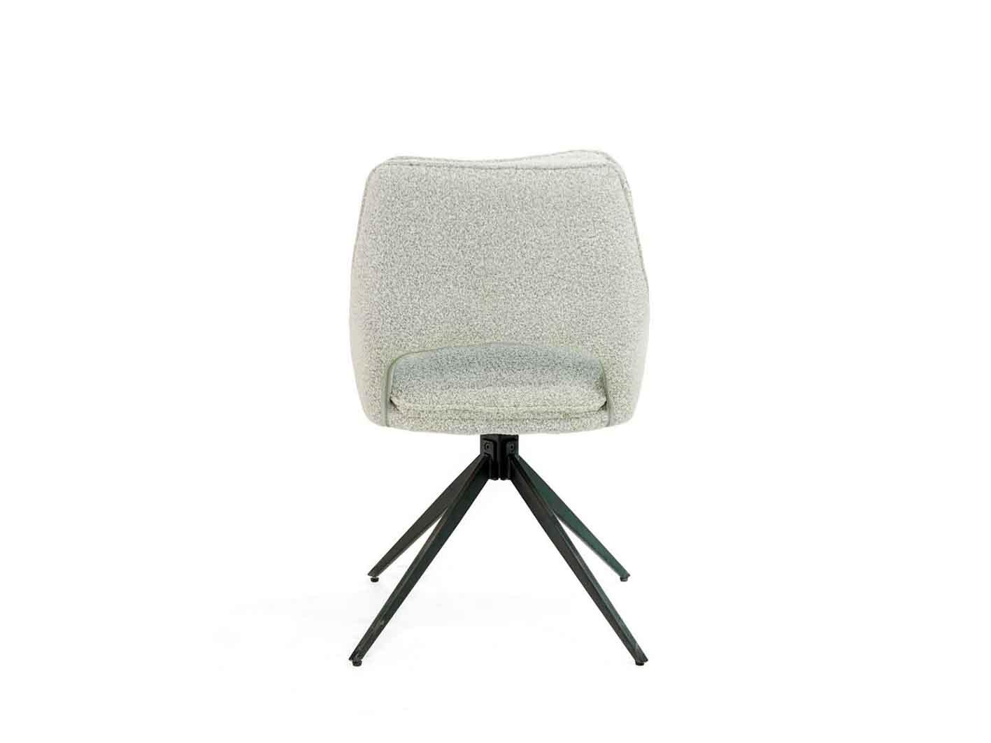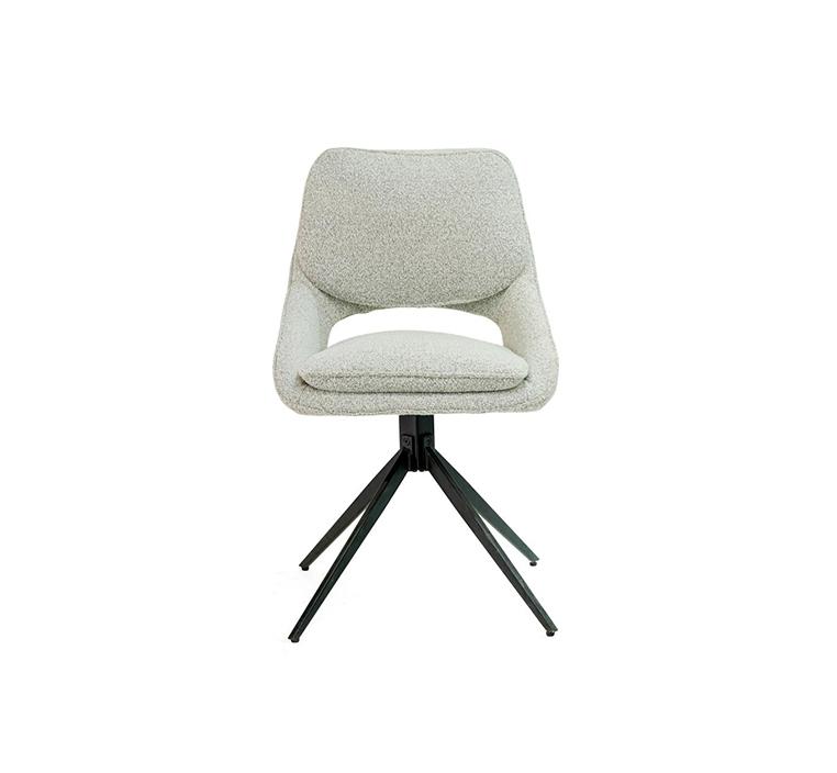 تم تغطية الكرسي بقماش البوكليه الرمادي الفاتح، المعروف بملمسه الناعم ومظهره الفخم. هذا النوع من القماش يضفي إحساسًا دافئًا ومريحًا عند الجلوس، كما يضيف لمسة من الأناقة المميزة إلى أي مساحة داخلية. اللون الرمادي الفاتح يتميز بقدرته على الانسجام مع أنماط الديكور المختلفة، سواء كانت كلاسيكية، صناعية أو عصرية بالكامل.