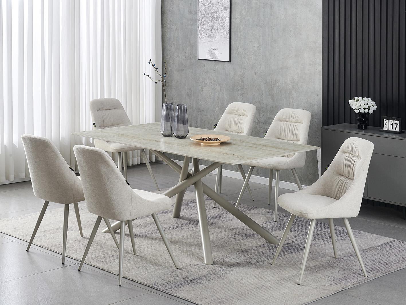يأتي الكرسي مبطناً برغوة عالية الكثافة، ومغلفاً بقماش بملمس الكتان الفاخر، ليمنحك إحساسًا بالنعومة والراحة مع لمسة راقية. إنه كرسي طعام مريح من قماش الكتان يتفوق في الراحة والأناقة.