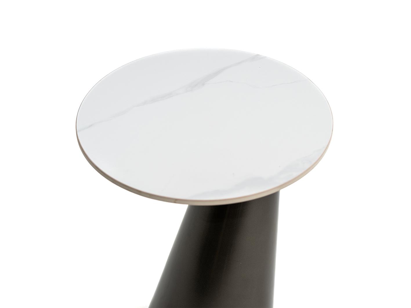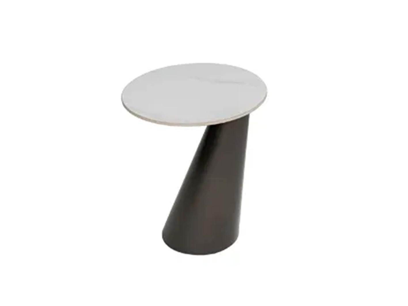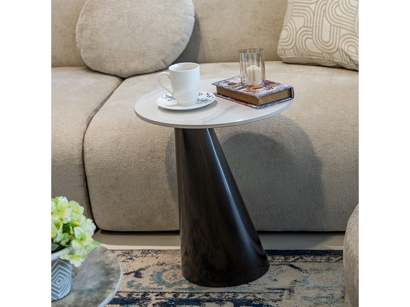 جملي اثاث غرفة معيشتك بطاولة خدمة زجنا الرائعة , تتميز الطاولة بمظهر استثنائي حيث تأتي بقاعدة معدنية علي شكل مخروط يجعلها ذات رونق خاص بالاضافة سطحها الدائري الرخامي الناعم الذي يجعلها سهلة التنظيف والعناية . الطاولة مصنوعة من خامات عالية الجودة مما يضمن لها الاستدامة والتحمل .
