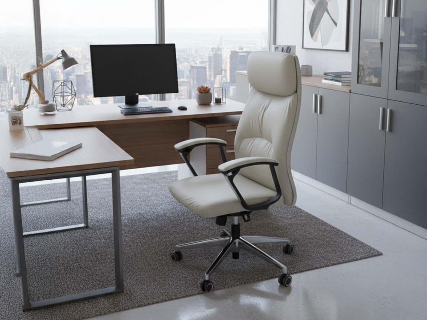 ارتقِ بتجربة الجلوس في مكتبك مع كرسي مكتب جلد بيج ألفا بمسند الظهر العالي، المصمم للمهنيين والمديرين التنفيذيين الذين يقدرون الراحة والفخامة. يجمع الكرسي بين التصميم العصري والأداء العملي، ليكون خيارًا مثاليًا لتحقيق أقصى درجات الراحة أثناء ساعات العمل الطويلة.