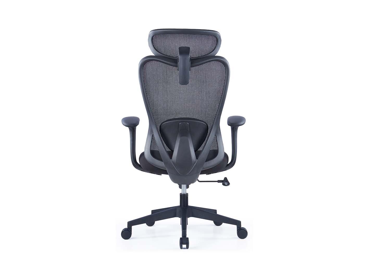 الظهر مصنوع من بولي بروبيلين أسود مع شبكة تهوية ودعامة قطنية قابلة للتعديل. هذا التصميم يحافظ على برودة الجسم ويمنع تراكم الحرارة أثناء العمل الطويل.