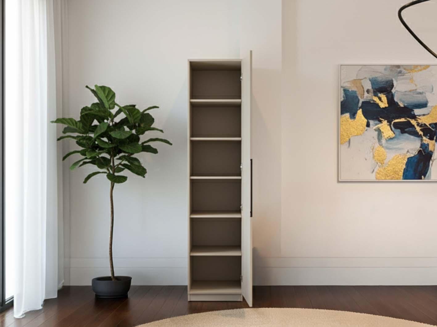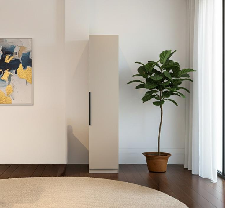 يأتي الدولاب بباب واحد يفتح بسهولة ليكشف عن عدة أرفف داخلية تساعدك في ترتيب أغراضك اليومية بطريقة مرتبة وواضحة. يمكنك تخزين الملابس، المفروشات أو حتى الحقائب الصغيرة بشكل منظم. بفضل أبعاده المدروسة (50 سم عرض × 60 سم عمق × 240 سم ارتفاع)، يعد خياراً مثالياً لغرف النوم الصغيرة أو زوايا التخزين الضيقة.صُنع أروبا من خشب MDF عالي الجودة ليمنحك متانة تدوم طويلاً واستقراراً في الاستخدام اليومي. المقابض المعدنية تضيف لمسة أنيقة وتُسهل عملية الفتح والإغلاق، مما يجمع بين المتانة وسهولة الاستخدام في تصميم واحد.