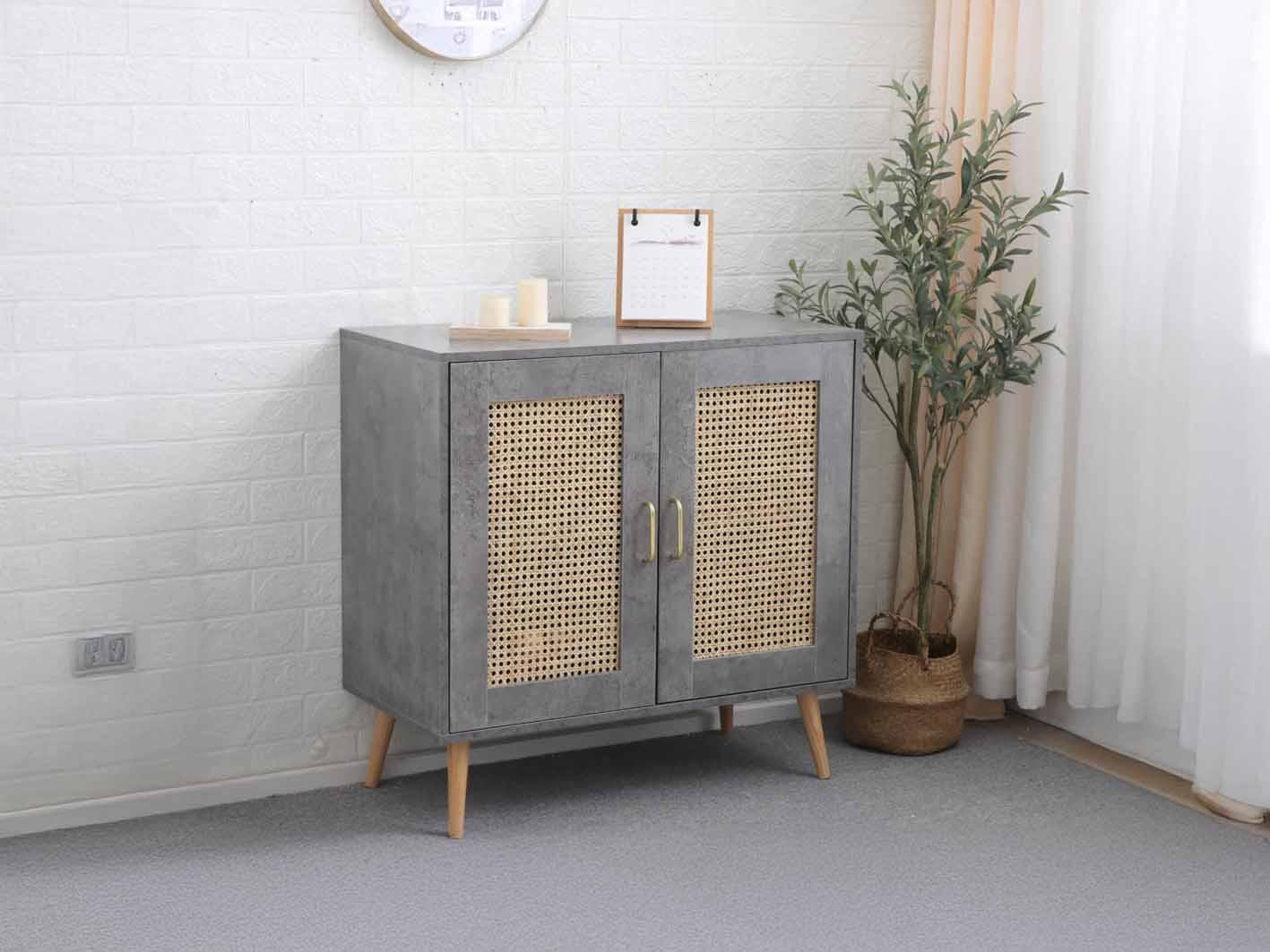 صُنع البوفيه من خشب MDF المعروف بجودته وثباته، مع تشطيب رمادي ناعم يعكس لمسة عصرية راقية. اللون الرمادي يمنح القطعة طابعًا هادئًا وأنيقًا، يتناغم بسهولة مع مختلف أنماط الأثاث والديكور. يحتوي على بابين أماميين، يسهل فتحهما لترتيب الأدوات أو الإكسسوارات. مقابضه المعدنية تضيف بُعدًا بصريًا أنيقًا وتوفر تحكمًا مريحًا في الاستخدام.