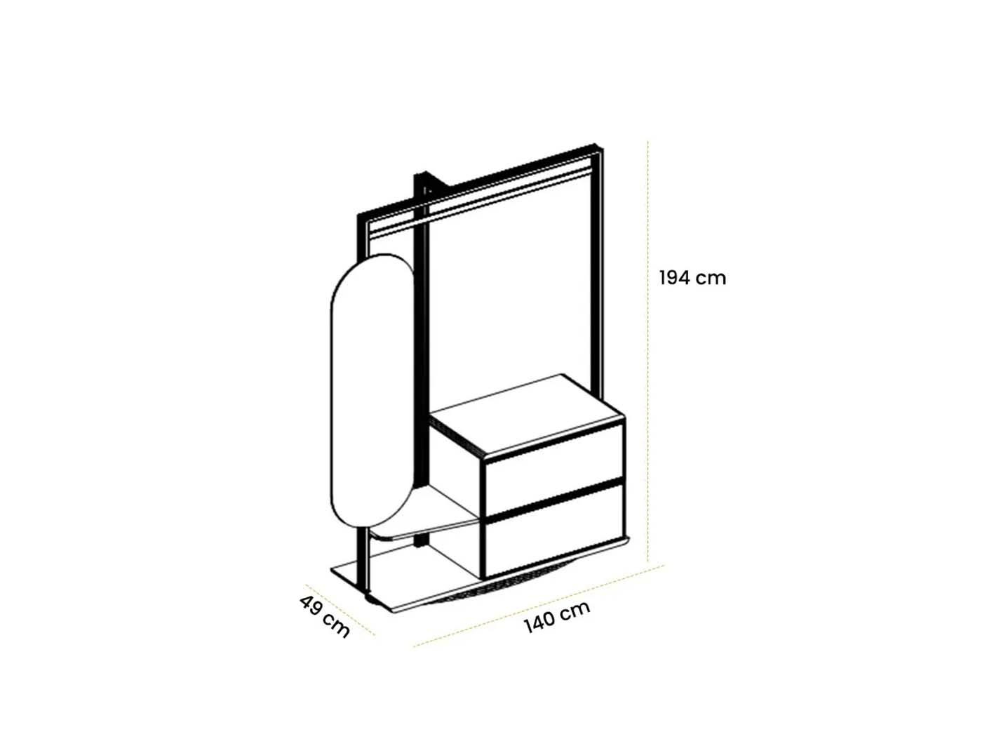 أضف إلى مدخل منزلك لمسة من الأناقة والتنظيم مع وحدة التخزين والتعليق باموكليه، المصممة لتجمع بين العملية والفخامة في قطعة واحدة متكاملة. بفضل تصميمها العصري وخاماتها عالية الجودة، تمنحك هذه الوحدة حلاً مثالياً لحفظ الملابس والأغراض اليومية مع مرآة طولية تضيف بعداً جمالياً ووظيفياً في آن واحد. إنها قطعة أساسية لكل منزل عصري يهتم بالتفاصيل.
