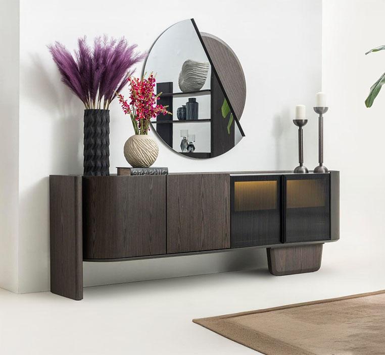 لا يقتصر الكونسول على دوره كقطعة أثاث عملية، بل يعمل كعنصر ديكوري محوري يضيف لمسة عصرية فاخرة إلى أي غرفة يوضع بها.