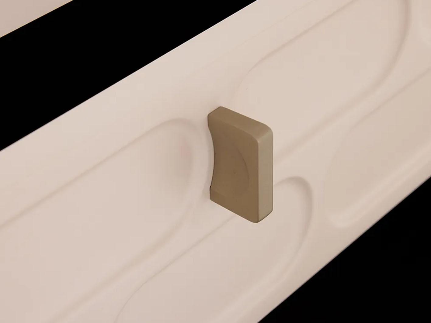 تضفي الأسطح الملساء والمقابض اللامعة واللمسات الهندسية الدقيقة لمسة فنية راقية. كما تمنح التصميم مظهرًا أقرب لغرف الفنادق الفاخرة.