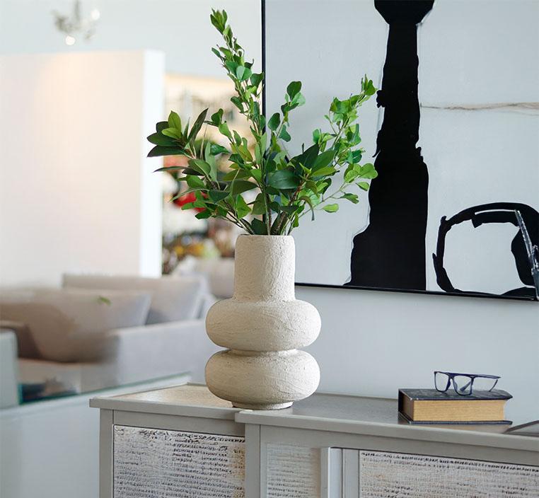 أضف لمسة من الأناقة الهادئة والأسلوب البوهيمي العصري إلى ديكور منزلك مع فازة الديكور السيراميك البوهيمي الفريدة بلونها البيج الطبيعي. تتميز بتصميمها العضوي الانسيابي وتفاصيلها الخشنة التي تضفي إحساسًا بالدفء والبساطة الراقية.فازة مثالية لعشاق الطراز البوهيمي والمينيمالي، يمكن استخدامها كقطعة ديكور قائمة بذاتها أو لتزيينها بفروع خضراء طبيعية أو صناعية.