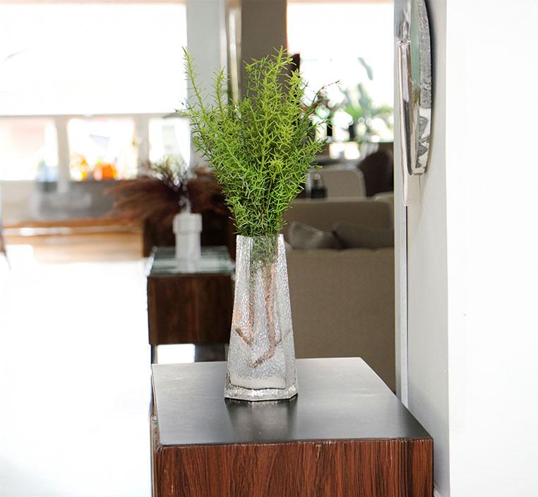 يمنح التصميم الهندسي للفازة حضورًا بصريًا مميزًا، مما يجعلها قطعة ديكورية فريدة تليق بأرقى المساحات. يمكن تنسيقها بسهولة في مختلف أنحاء المنزل، سواء في المطبخ لإضفاء إحساس بالانتعاش، أو في غرف النوم لتوفير أجواء هادئة، أو في غرف المعيشة والمجالس كقطعة لافتة تضيف طابعًا راقيًا وأنيقًا.