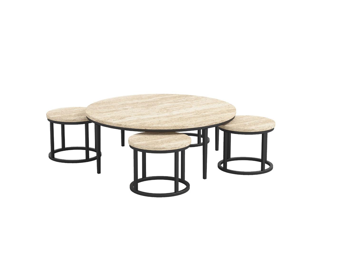 يتكون الطقم من 5 قطع: طاولة كبيرة بمقاس 80*30 سم وطاولة صغيرة بمقاس 30*25 سم. يتيح لك هذا التنوع ترتيب الطاولات حسب حجم المجلس أو مساحة الغرفة.