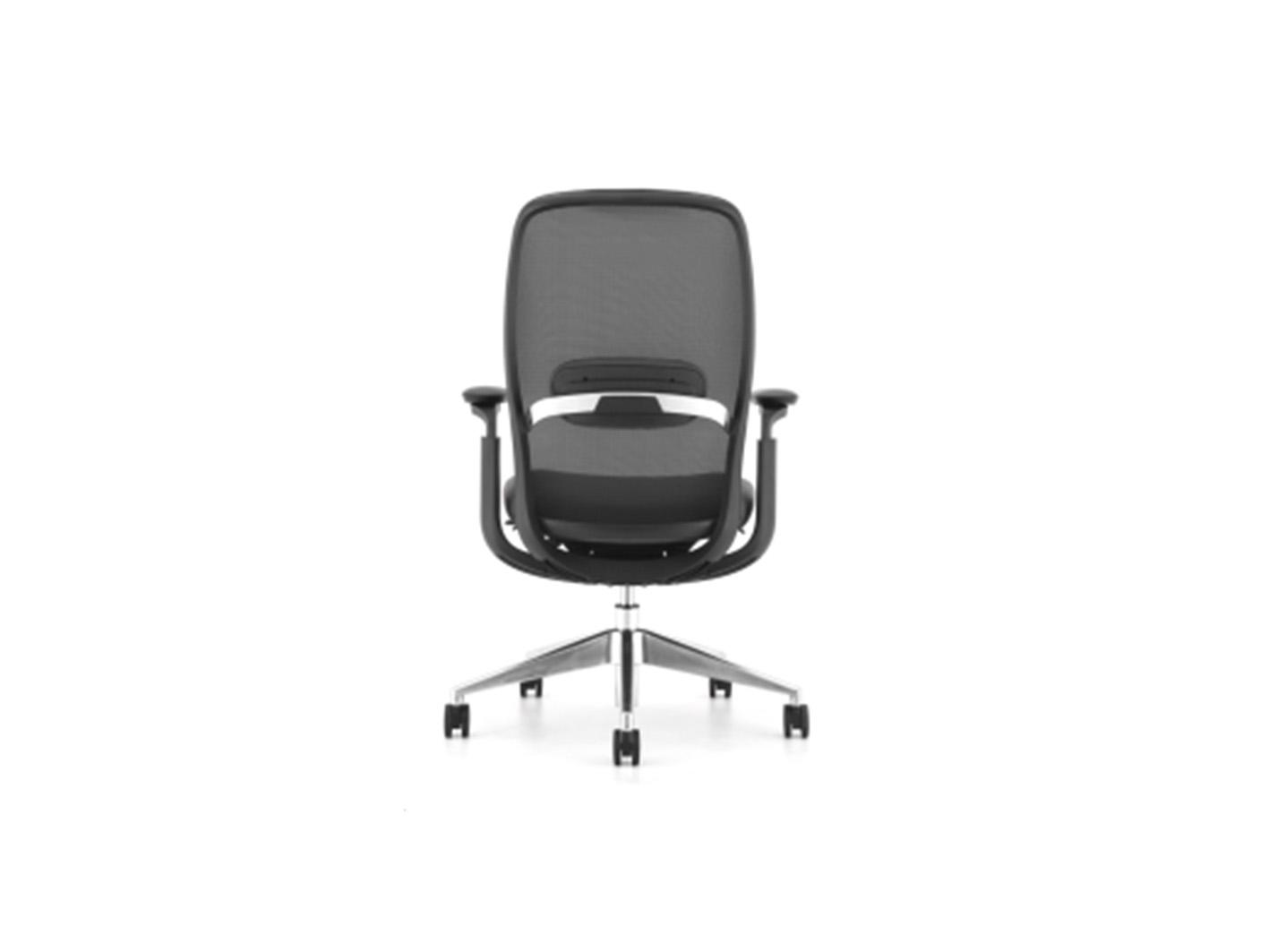 الظهر مصنوع من إطار نايلون أسود متين مع شبكة مرنة تسمح بمرور الهواء. بفضل هذه الميزة، يبقى ظهرك منتعشًا حتى في الأوقات الحارة. كما يحتوي على دعامة قطنية قابلة للتعديل مع خصر من الألومنيوم، وهذا يمنح أسفل الظهر دعماً إضافياً يقلل من الإجهاد.