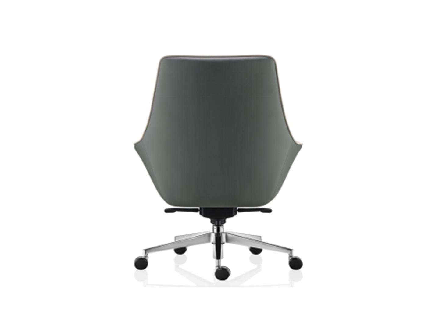تم تصنيع ظهر الكرسي من هيكل فولاذي قوي مغطى بطبقة من الإسفنج المصبوب عالي الكثافة لضمان المتانة والراحة. أما الطبقة الخارجية فهي من جلد البولي يوريثان الفاخر بلمسة ناعمة تضيف إحساساً بالرفاهية ومظهراً يليق بالمكاتب التنفيذية.