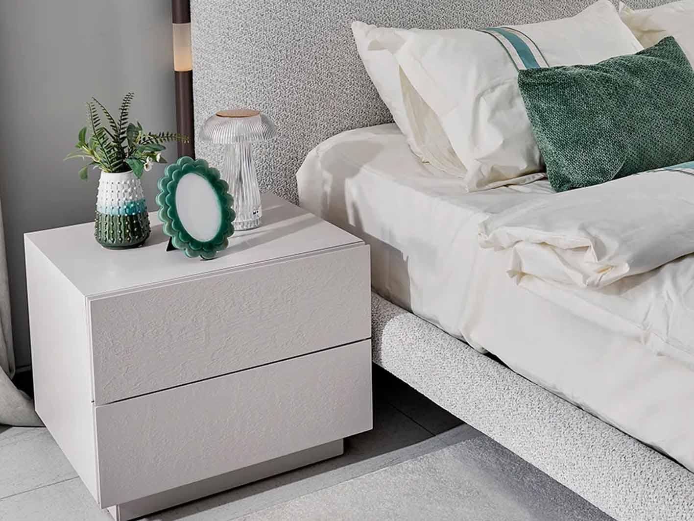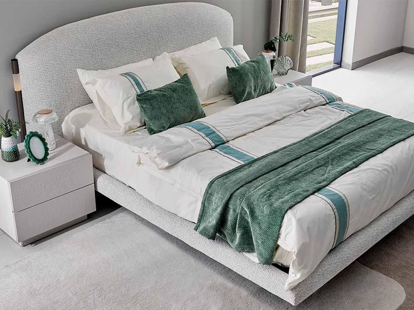 تم تنجيد لوح الرأس بقماش فاخر يمنحك راحة أثناء الجلوس أو القراءة. بالإضافة إلى ذلك، يضيف ملمسه الناعم دفئًا بصريًا للغرفة.