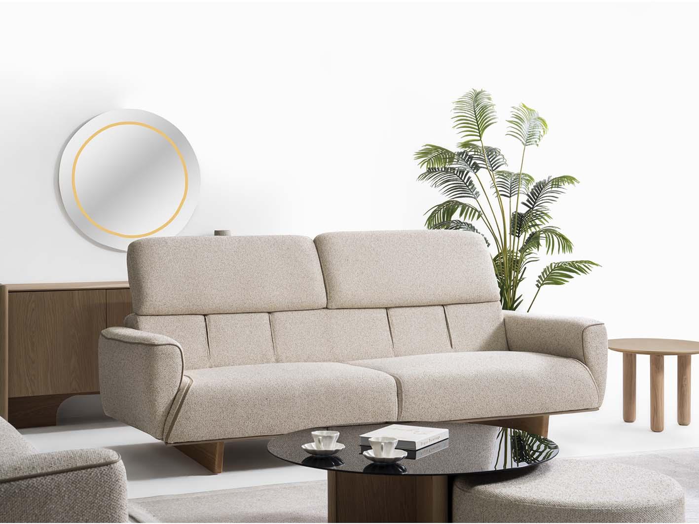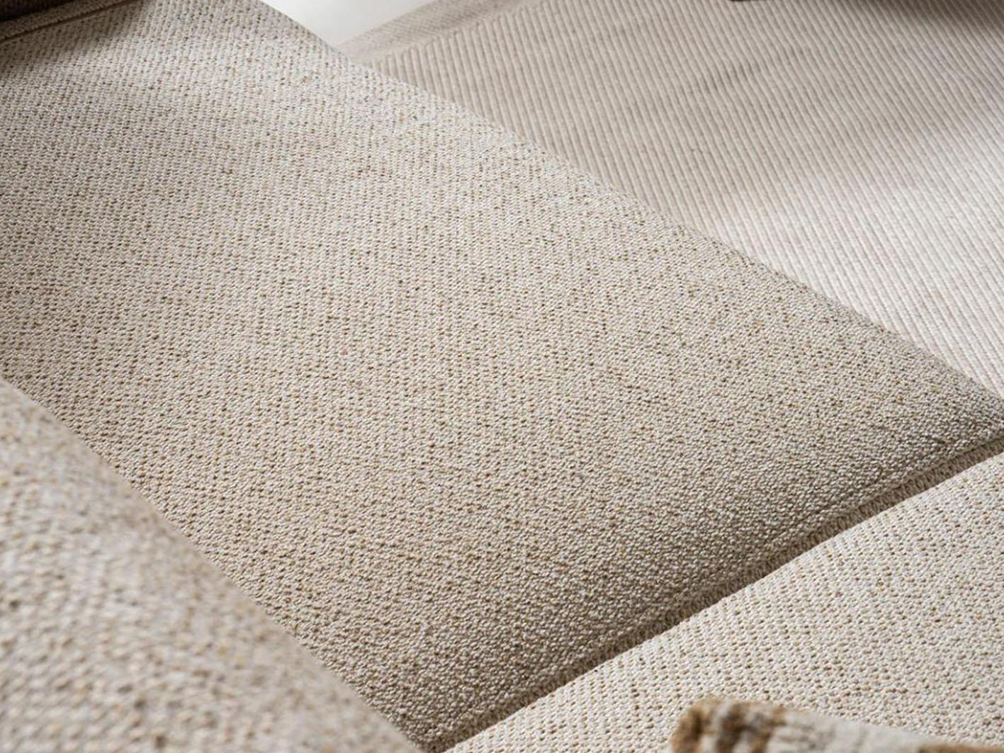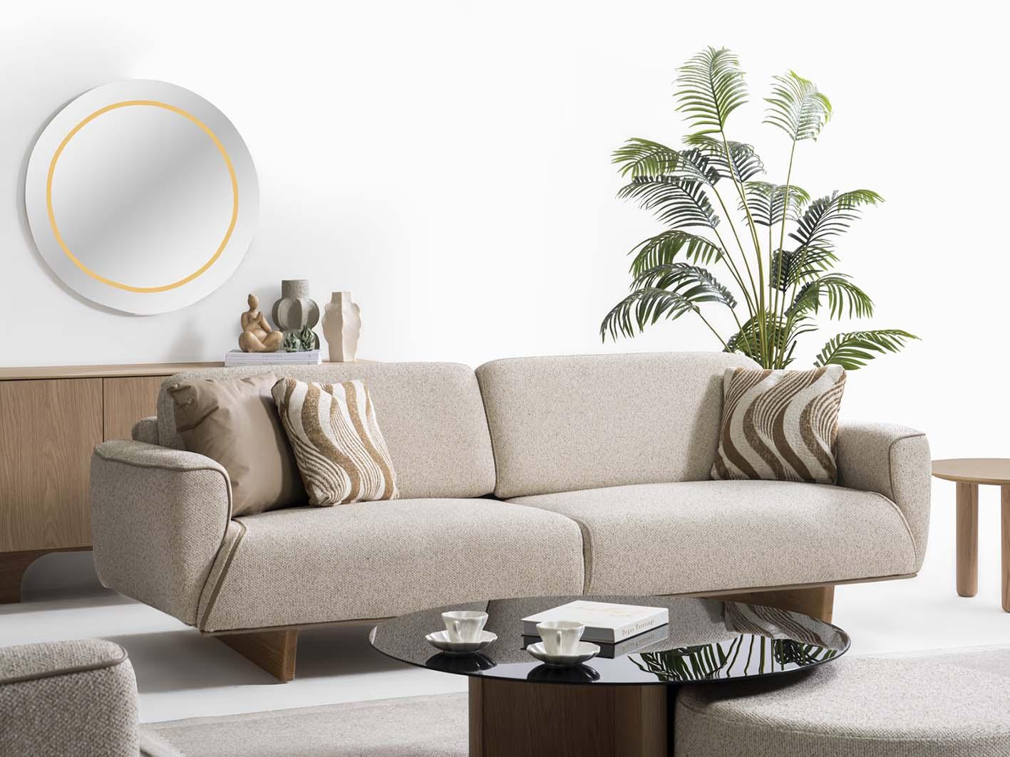 تم تصنيع القماش من مزيج فاخر بنسبة 80% بولي بروبلين، 10% قطن، و10% بوليستر. هذا المزيج يمنح ملمسًا ناعمًا مع مقاومة عالية للتآكل، ليبقى الكنب أنيقًا لفترة أطول.