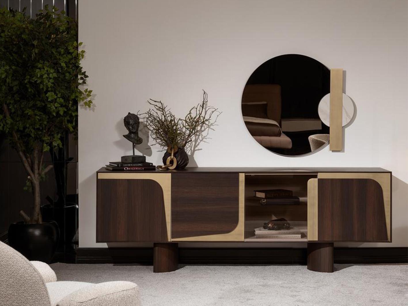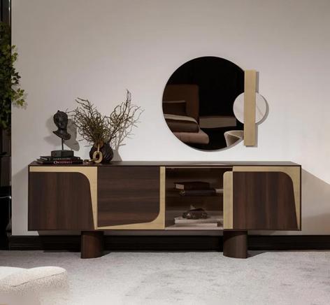 تميزي بأناقة اختياراتك في غرفة معيشتك مع كونسول مع مرآه لي مانس الرائع، فهو يعد إضافة أنيقة وعصرية لغرفة معيشتك، حيث يتميز بهيكل خشبي صلب لضمان المتانة بمزيج من لون الجوز والذهبي الممتزجان معا بكل سلاسة،كما يحتوي علي باب زجاجي فاخر شفاف يجعله قطعة فاخرة, صممت المرآة بنمط دائري مع تفاصيل جانبية لإضفاء لمسة من الأناقة،الكونسول يحتوي علي ارفف عديدة تضمن لك ترتيبا ملائما لاغراضك مما يجعلها خيارا مثاليا لإضافة لمسة من الفخامة إلى منزلك.