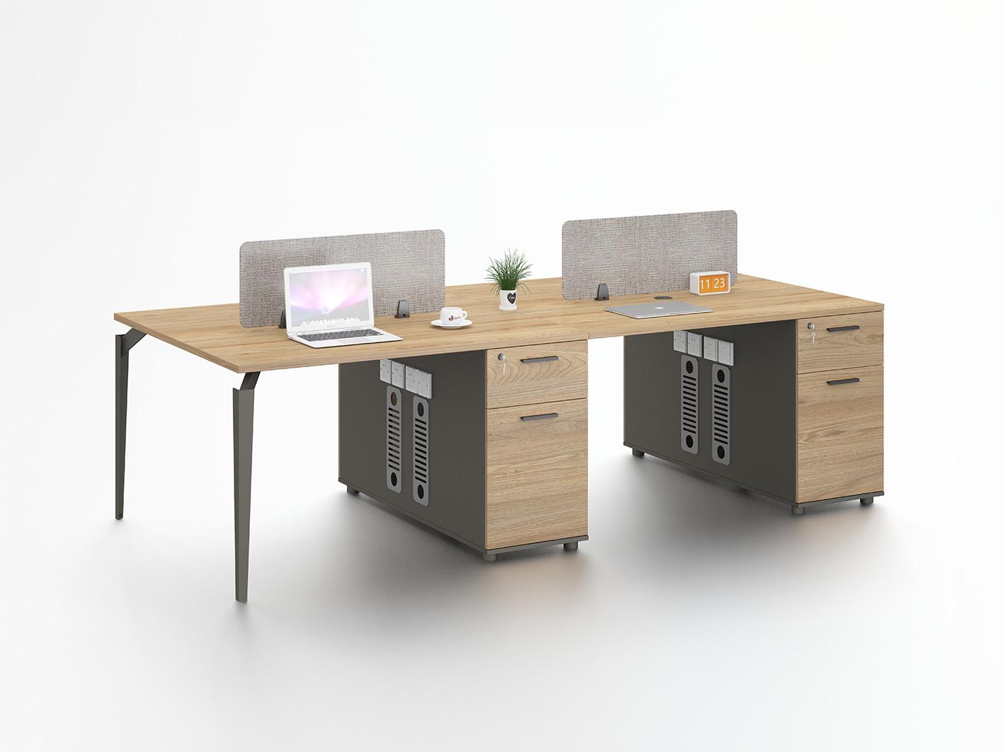 مع وجود فرق مختلفة وطبيعة عمل مشتركة و مختلفة ، فإن لأماكن العمل الحديثة متطلبات فريدة لبيئات العمل. اختار قواطع نفرين ميامي بجهات متقابلة بالرمادي الفاتح الأنيق الذي سيجعل مكان العمل رائع و جميل. يمتاز هذا المكتب وجود ادارج لتخزين الاغراض. و ان المكتب ذو ثبات عالى. تم صناعة المكتب من خشب الملامين العالي الجودة.
