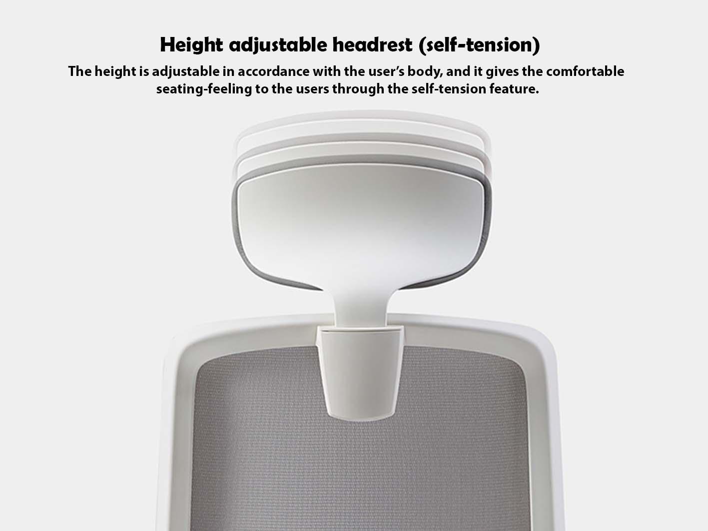 أما مسند الرأس فيأتي بآلية تعديل ذاتي للارتفاع، لتوفير راحة طبيعية للرقبة أثناء العمل أو الاستراحة.
