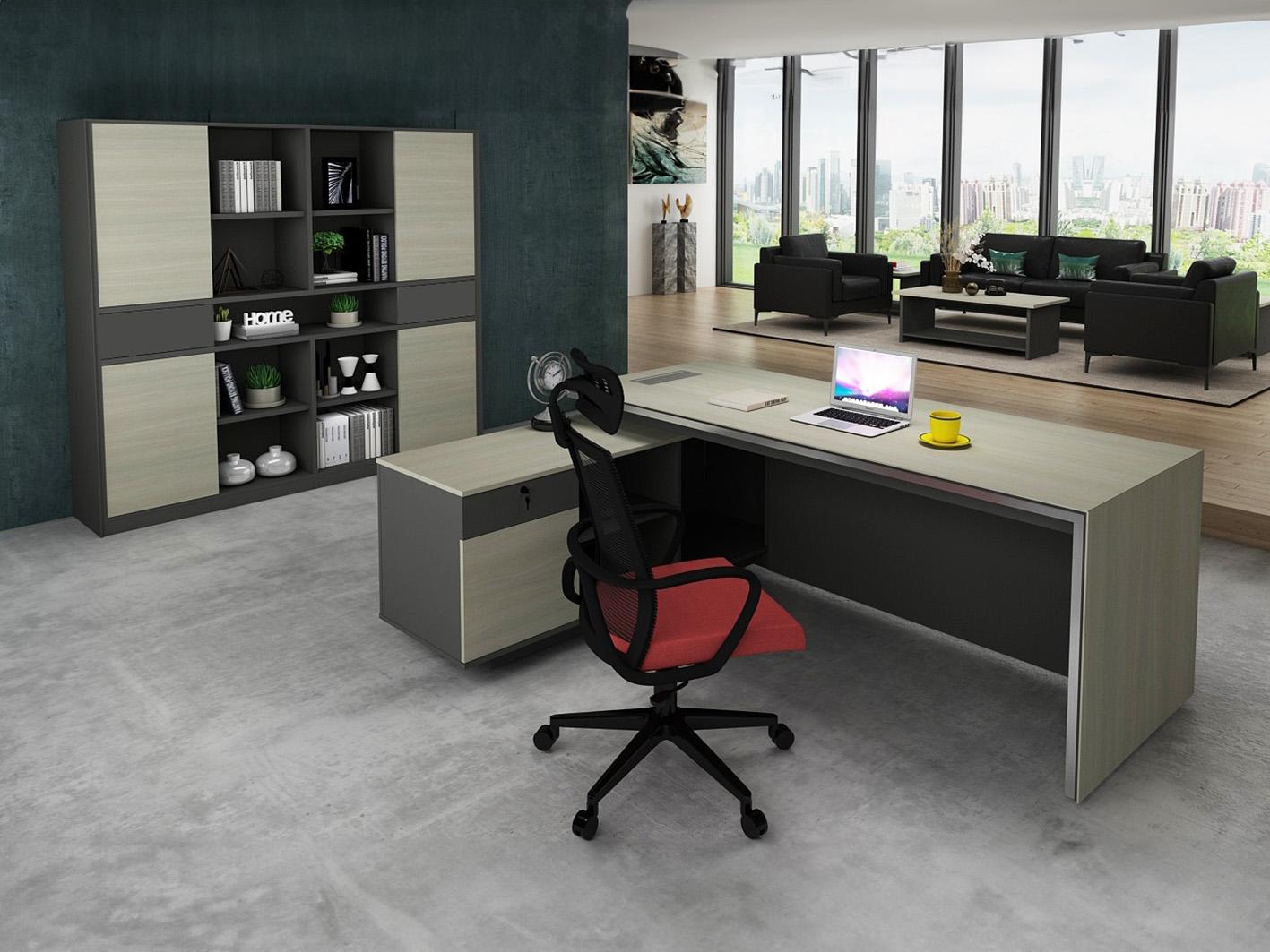 تصميم عصري وأنيق: اللون الرمادي الأنيق يجعل المكتب متناسبًا مع مختلف أنماط الديكور الحديثة، ليضفي لمسة من الفخامة على مساحتك.