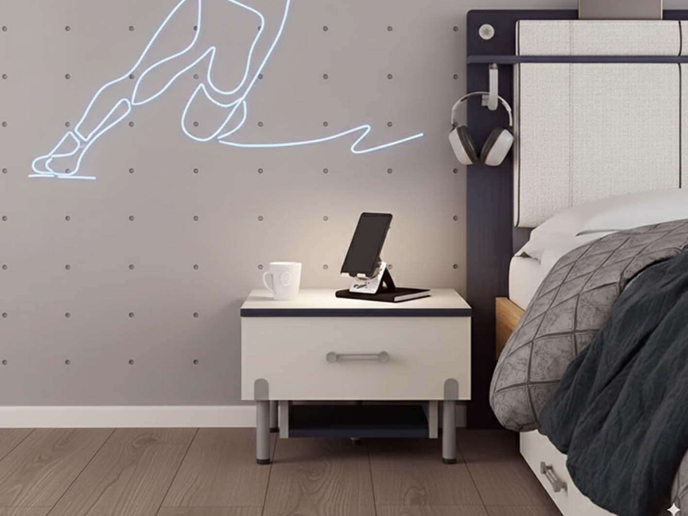 يتحول كمدينو غرفة الأطفال العصري نيكساس إلى مساعد عملي لتنظيم الكتب والملحقات، حيث يوفر الدرج الداخلي مساحة لجوارب طفلك وأغراضه الصغيرة، بينما يتيح الرف السفلي ترتيب الكتب والألعاب بطريقة منظمة وسهلة الوصول. تصميم الكمدينو الذكي يجعل منه قطعة متعددة الاستخدامات تجمع بين الجمال والوظيفة في الوقت نفسه.