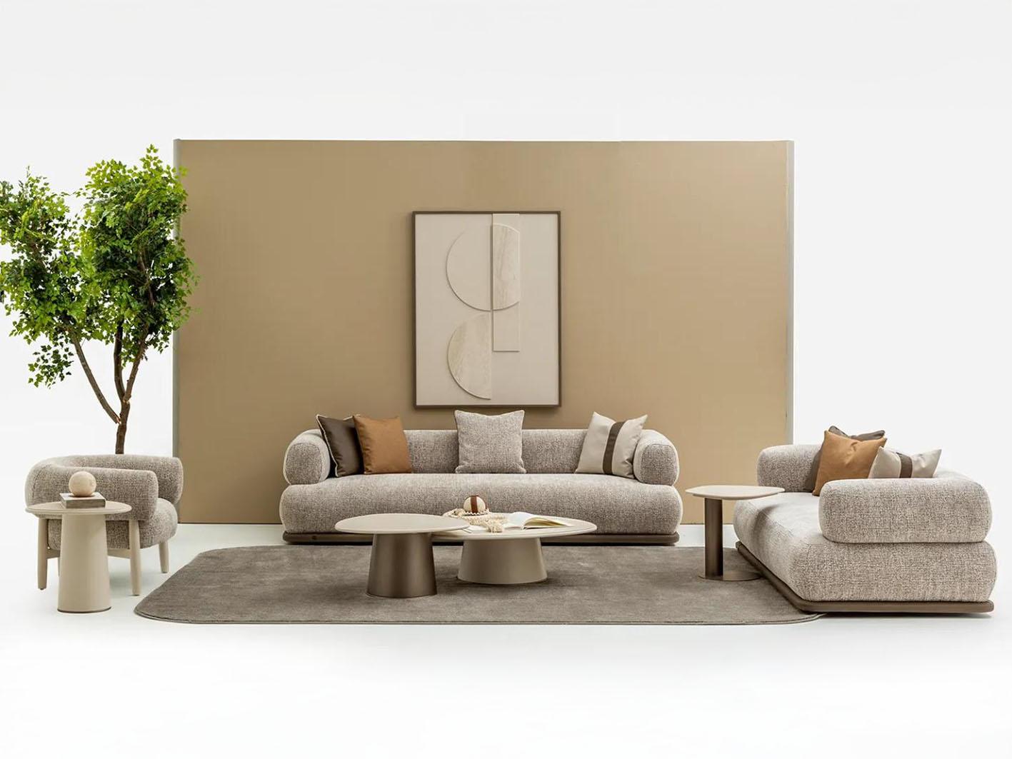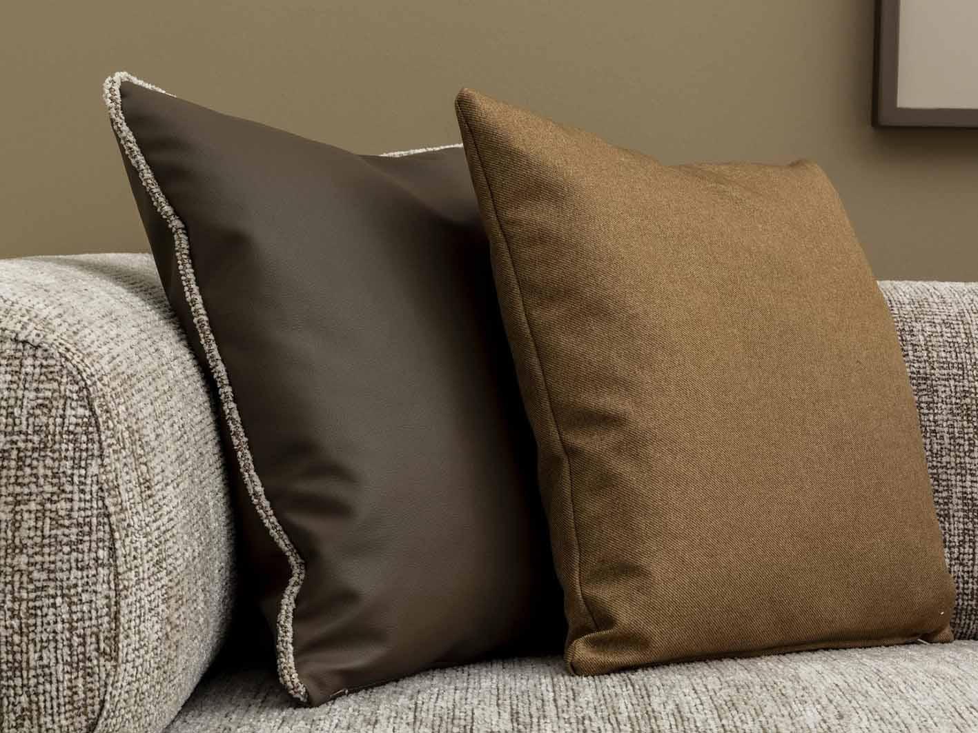تم تغطية الكنب بخامة البوكليه العصرية، وهي خامة ناعمة الملمس تمنح إحساساً مريحاً وتتميز بقدرتها على تحمل الاستخدام اليومي. هذا القماش من أبرز صيحات الديكور الحديثة، ليضفي لمسة فاخرة معاصرة على منزلك.