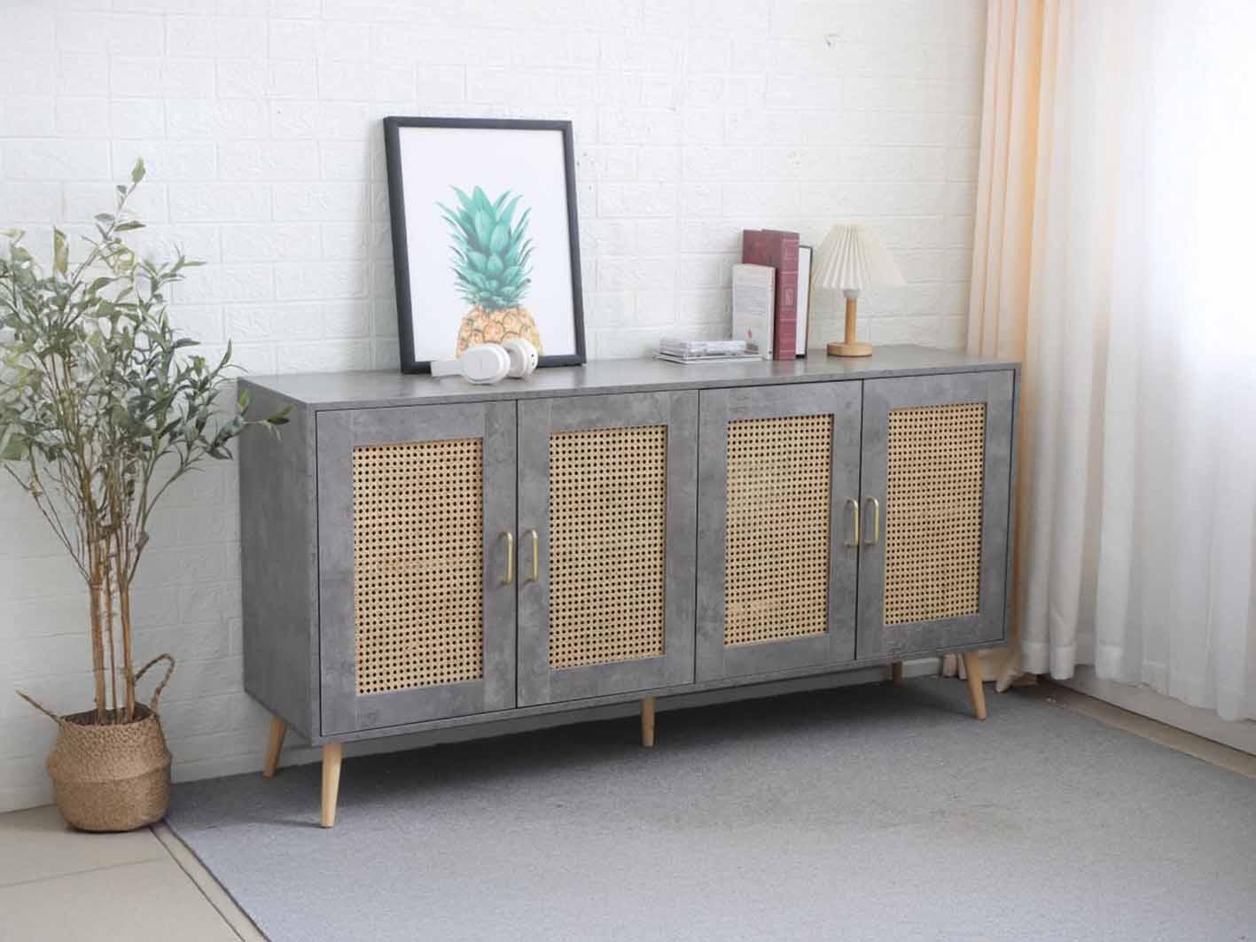 تم تصنيع بوفيه رينزو من خشب MDF عالي الجودة، المقاوم للرطوبة والخدوش، ليمنحك متانة تدوم مع الاستخدام اليومي، دون المساومة على المظهر الراقي. يتميز التصميم بأربعة أبواب أنيقة بآلية فتح سلسة، تتيح لك تنظيم الأغراض بشكل مرتب وسهل الوصول.