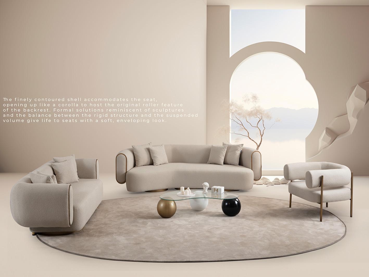 كنب سايستا الرباعي مثالي للمجالس الواسعة وغرف المعيشة الكبيرة، بلونه البيج المحايد الذي يضفي هدوءًا وانسجامًا على المكان، كما يسهل تنسيقه مع مختلف أنماط الديكور الداخلي سواء كان مودرن أو كلاسيكي. تصميمه المستدير وحجمه الرحب يجعله الخيار الأمثل للجلسات العائلية أو استقبال الضيوف في أجواء أنيقة ومريحة.