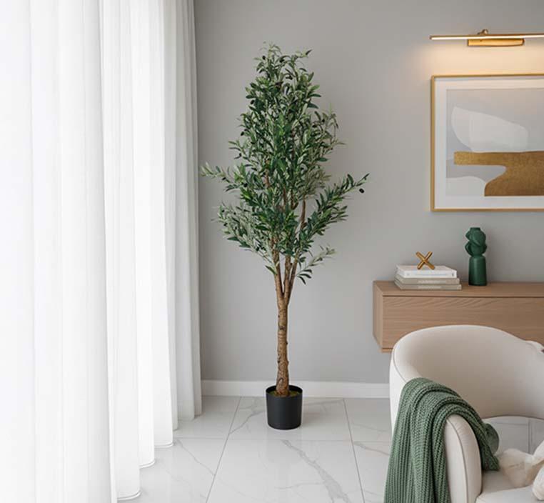 استمتع بجمال الطبيعة في منزلك دون عناء العناية اليومية مع شجرة الزيتون الصناعية التي تجمع بين الأناقة والواقعية في تصميم واحد فاخر. صُممت بعناية فائقة لتبدو وكأنها شجرة زيتون حقيقية تمامًا، بأوراق خضراء طبيعية الملمس وتفاصيل دقيقة تحاكي شكل الأوراق وجذوع الزيتون الأصلية، لتمنح أي مساحة لمسة من الهدوء والدفء المستوحى من جمال الطبيعة المتوسطية.
