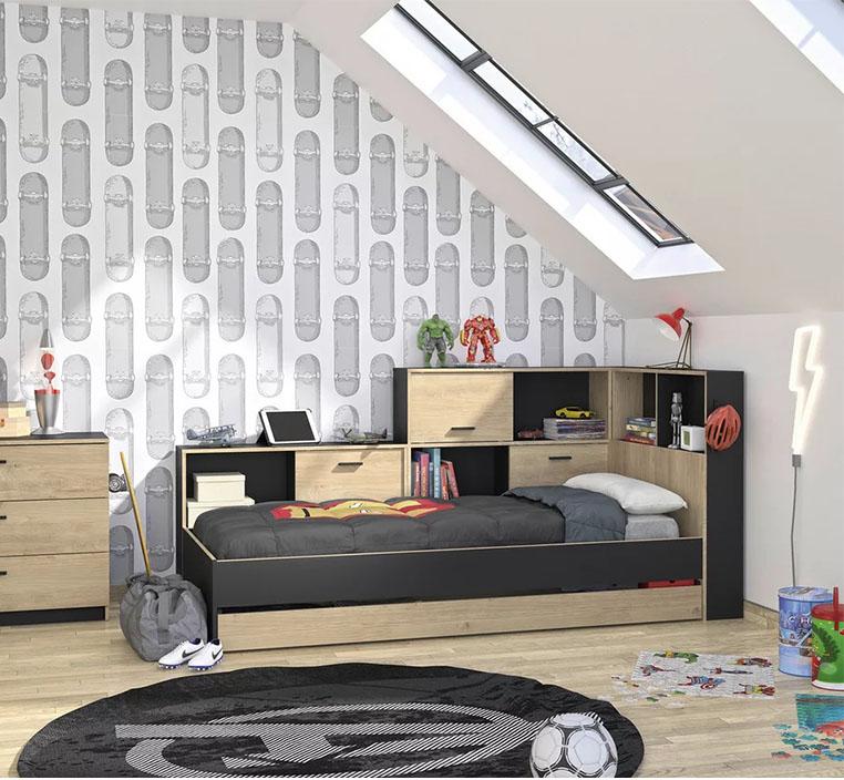 بمقاس 90*120 سم، يوفر السرير مساحة مثالية للنوم براحة تامة مع الحفاظ على حجم مناسب للغرف الصغيرة أو غرف الشباب. إنه الحل الأمثل لاستغلال المساحات دون التضحية بالراحة أو الجودة.