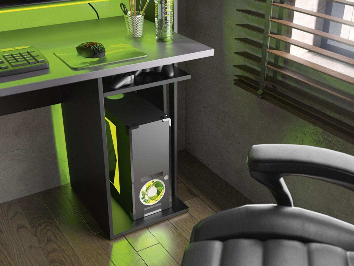مساحات تخزين متنوعة: يحتوي مكتب ستريم على أرفف جانبية متعددة تُستخدم لتخزين أجهزتك الإلكترونية، الإكسسوارات، والألعاب. كما يتضمن مساحة مخصصة لوحدة المعالجة المركزية (PC) مع فتحات تهوية جيدة لضمان التبريد الأمثل أثناء اللعب لساعات طويلة.