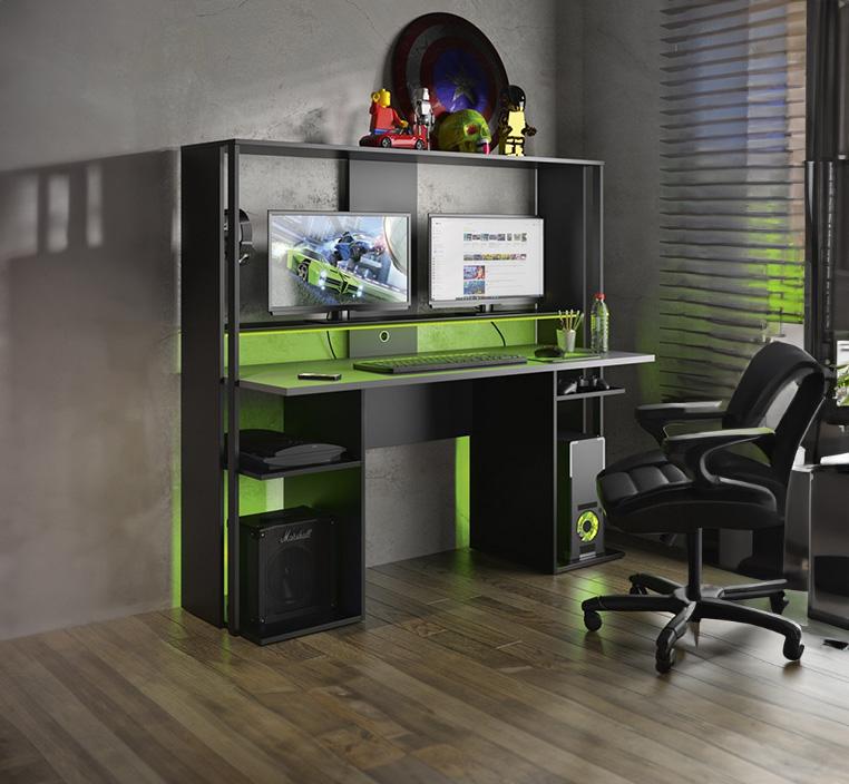إضاءة خلفية مدمجة: لإضافة لمسة من الأناقة والتشويق إلى غرفة الألعاب الخاصة بك، يأتي المكتب مزودًا بإضاءة خلفية LED مدمجة تُضفي جوًا مثيرًا أثناء اللعب الليلي.