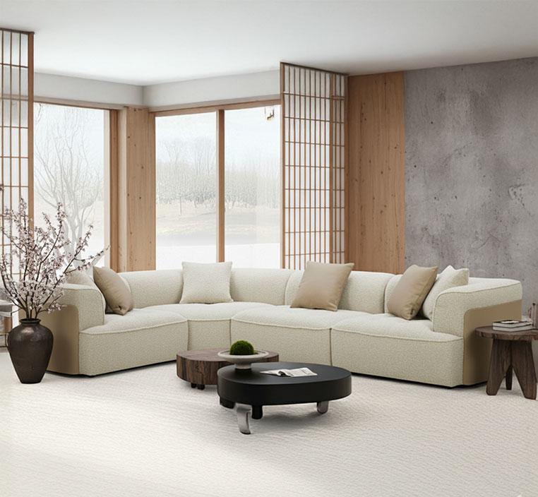 يتكون الكنب من 4 قطع قابلة للترتيب وفق احتياجاتك الخاصة، حيث يمكن تشكيله على شكل زاوية واسعة لغرفة المعيشة أو إعادة توزيعه بشكل منفصل ليخلق جلسة أكثر حميمية. كما أن إمكانية إضافة قطع إضافية تجعله مناسباً للمساحات الكبيرة ولعدد أكبر من الضيوف.