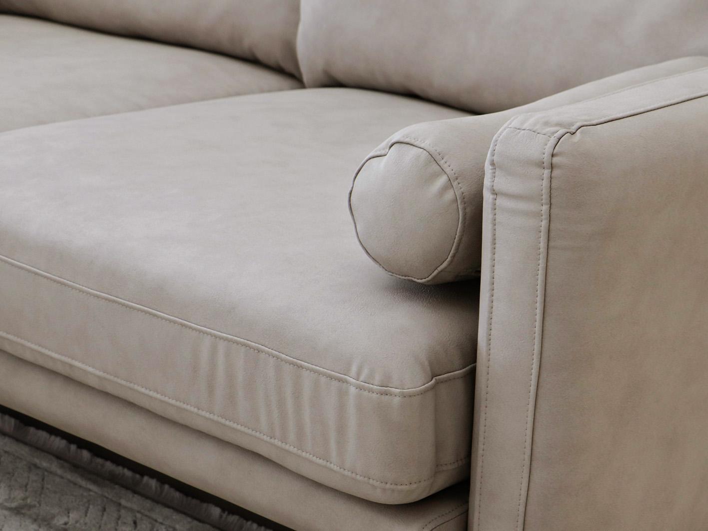 • تنجيد جلدي فاخر: غطاء جلدي فاخر يمنح الكنب مظهرًا عصريًا ويزيد من متانته وسهولة تنظيفه.