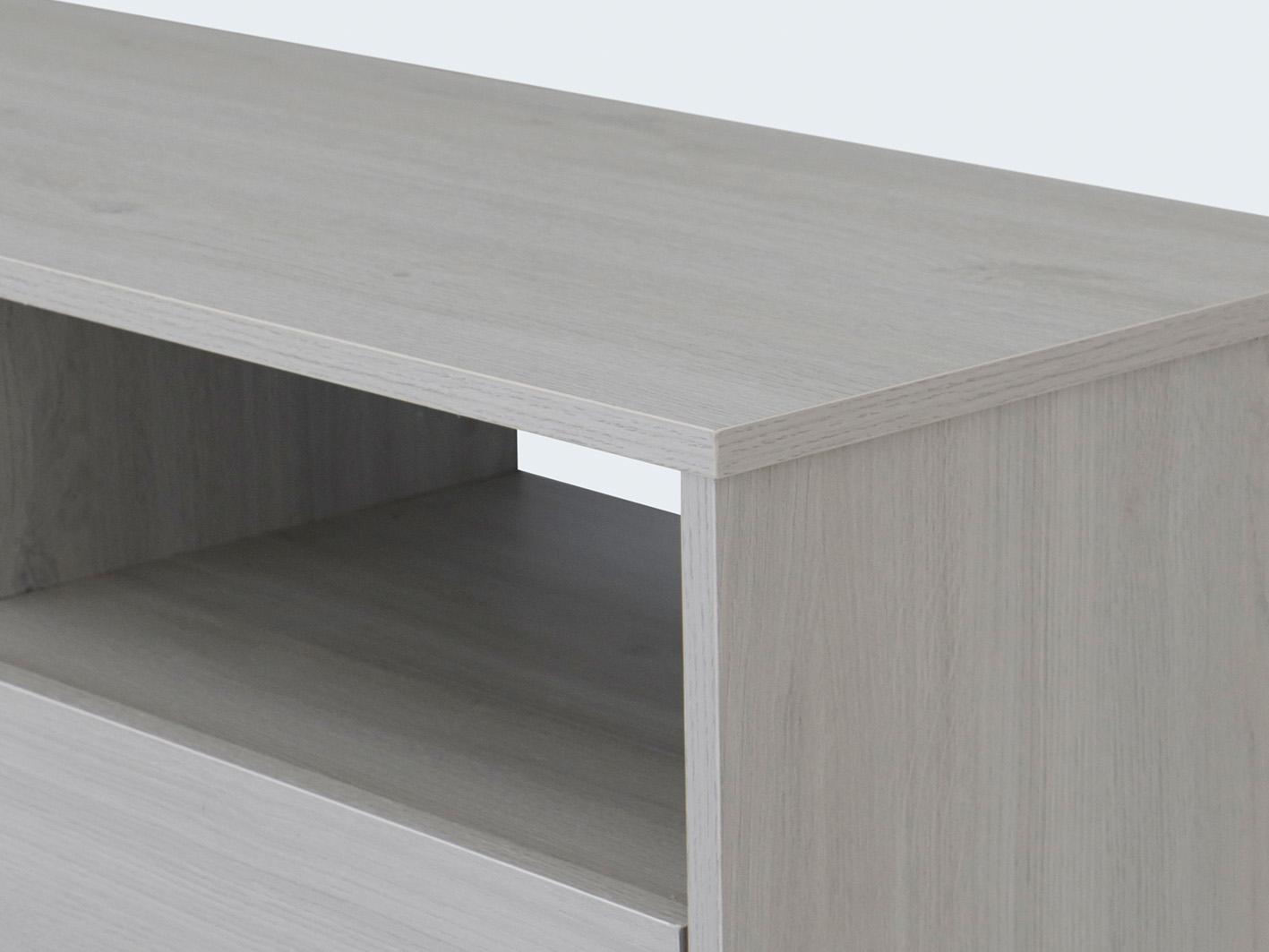 تم تصنيع طاولة تلفزيون تورينو من خشب MDF متين ومقاوم للعوامل الخارجية مع تشطيب قشور البلوط عالي الجودة، مما يضمن لك طاولة متينة تدوم طويلاً. تضمن الأرجل المعدنية القوية باللون الأسود ثبات الطاولة وتكمل جمالية التصميم العصري.